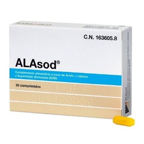 Alasod es un complemento alimenticio a base de ácido a-lipoico y superóxido dismutasa que permite una doble acción en el mecanismo antioxidante del organismo: el superóxido dismutasa previene la formación de los radicales libre y el ácido a-lipoico favorece la eliminación de los radicales libres ya formados.\r\n\r\nAlasod lo podrá encontrar en nuestra farmacia online .\r\n