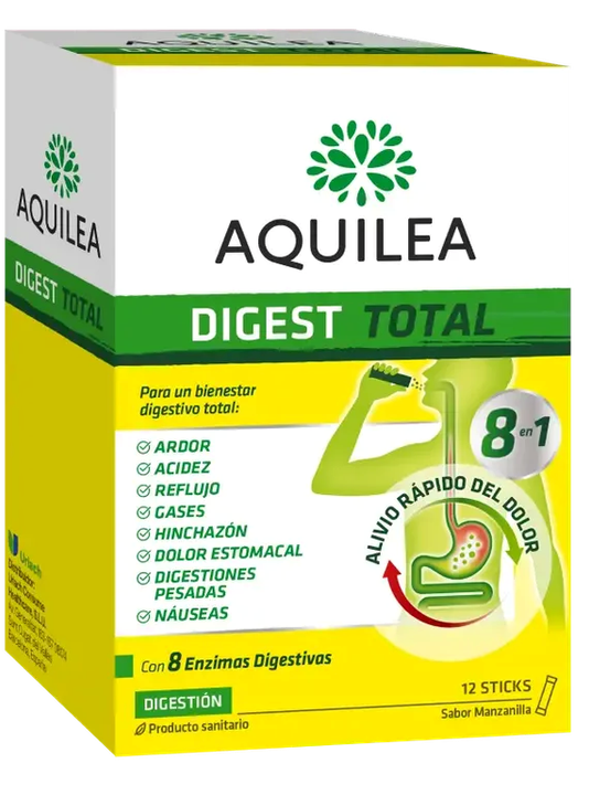 Aquilea Digest Total es un multisíntomas que actua rápidamente combatiendo 8 síntomas digestivos: acidez, ardor, reflujo, gases, hinchazón, dolor de estómago, digestiones pesadas y náuseas. Todo ello gracias a una combinación eficaz de ingredientes y 8 enzimas digestivas.