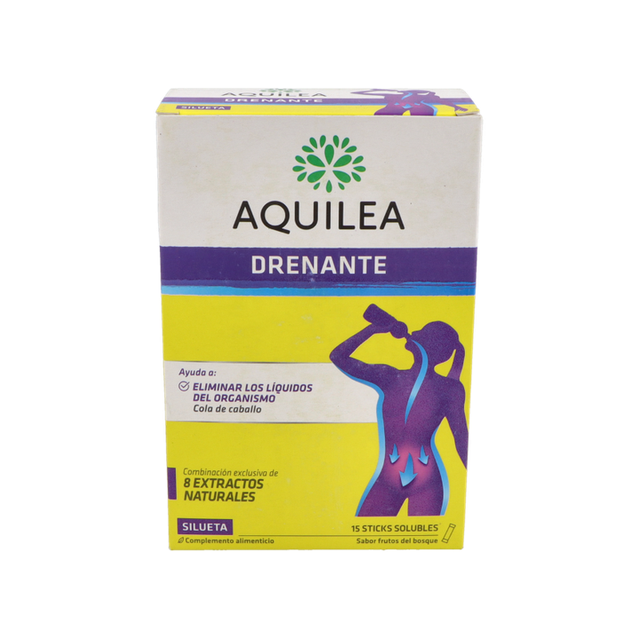 AQUILEA DRENANTE es un complemento alimenticio diseñado para contribuir al normal funcionamiento del sistema depurativo del organismo. Su formulación específica combina ingredientes naturales que favorecen la eliminación de líquidos y la reducción de la sensación de pesadez en las extremidades.