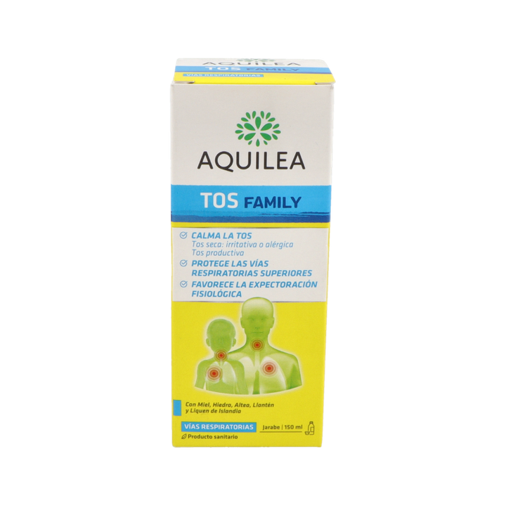 AQUILEA TOS FAMILY 150 ML es un complemento natural diseñado para aliviar la tos y facilitar la expulsión de las mucosidades. Su fórmula está elaborada con ingredientes de origen vegetal que ayudan a calmar la irritación de la garganta y a suavizar la tos seca, además de contribuir a la eliminación de las secreciones. Este producto es ideal para toda la familia, incluyendo niños a partir de dos años.