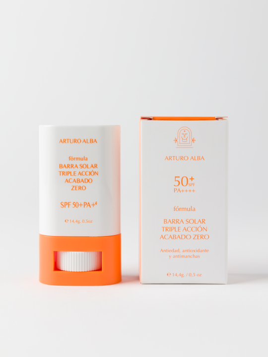 Defensa solar de amplio espectro con actividad antiedad, antimanchas y protección antioxidante.