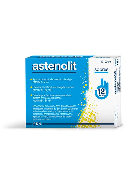 Astenolit es un complemento dietético efervescente formulado para ayudar en la reducción de la fatiga y el cansancio, favoreciendo un estado de bienestar integral. Su combinación de ingredientes activos promueve la vitalidad y el rendimiento físico y mental. Este producto está especialmente diseñado para aquellos que buscan una solución práctica y efectiva para mantener su energía a lo largo del día.