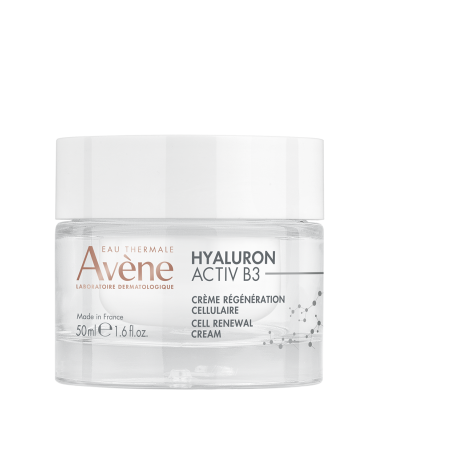 \r\n\r\n\r\nCon la edad todo se acelera. Las células envejecidas se extienden y la piel funciona a cámara lenta. Los laboratorios dermatológicos Avène han creado la crema Hyaluron Activ B3, concentrada al 0,2% en ácido hialurónico puro (de alto y bajo peso molecular) y niacinamida (6 %) para actuar sobre la causa del envejecimiento y prolongar la vida de las células*. La piel queda rellena, alisada y radiante desde la primera aplicación. Después de 2 semanas, se regenera, se reafirma y se reducen las arrugas**. Su textura aterciopelada y delicadamente perfumada proporciona comodidad a la piel. También es una muy buena prebase de maquillaje. La crema regeneradora celular Hyaluron Activ B3 es un producto de cuidado de la piel ecoconcebido que contiene un 92 % de ingredientes de origen natural y se presenta en un tarro de cristal 100 % recargable.\r\n\r\n*prueba in vitro, gracias a la niacinamida.\r\n**autoevaluación, 71 usuarios, 1 aplicación al día.\r\n\r\n