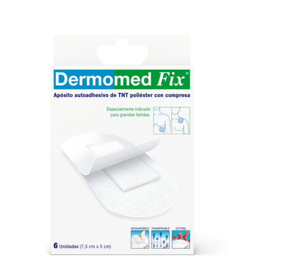 Apósito elástico y adaptable con gran capacidad de absorción de tejido sin tejer que permite que la piel transpire y con adhesivo que no deja residuos al ser retirado.