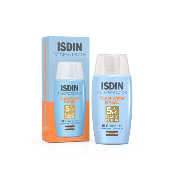Es el primer fotoprotector facial de base acuosa que ofrece una revolucionaria protección UV invisible, fresca y de absorción inmediata. Está formulado con una malla gelidificada que permite minimizar la fase grasa del producto. Ofrece una sensación de frescor inigualable y un acabado sedoso y seco. Cuenta con la Tecnología Fusion de ISDIN, fácil de aplicar y de absorción inmediata que se funde con la piel. Incorpora además, dos innovadoras tecnologías: Safe-Eye Tech, que no irrita los ojos, ideal, por ejemplo, en la práctica del deporte; y Wet-Skin, que permite la aplicación incluso sobre piel mojada y es resistente al agua. Y sin renunciar a una muy alta protección solar, SPF 50+ UVB y UVA.