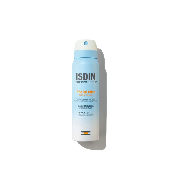 Protege, hidrata y refresca tu piel con Facial Mist SPF 50, el fotoprotector facial que se pulveriza en forma de bruma facial invisible y ultrafina. Aporta una alta protección frente a la radiación UVB/UVA y la luz azul, hidrata en profundidad y ayuda a restaurar la barrera cutánea. ¡Ideal para usar sobre el maquillaje!