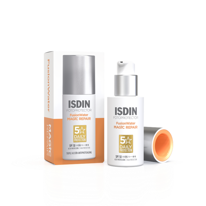 El ISDIN Fotoprotector Fusion Water Magic Repair es un protector solar de alta eficacia formulado especialmente para proporcionar una protección solar óptima (FPS 50) mientras repara y cuida la piel. Su textura única y ligera se funde con la piel, brindando un acabado suave y sedoso sin dejar residuos grasos.