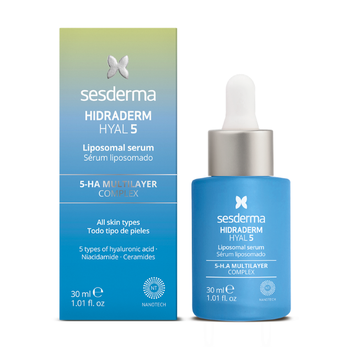 Sérum ultrahidratante con 5 tipos de ácido hialurónico liposomado. Mejora la elasticidad y la textura de la piel, reduce y rellena las arrugas y líneas de expresión y restaura la función barrera proporcionando una hidratación multicapa a corto y largo plazo.