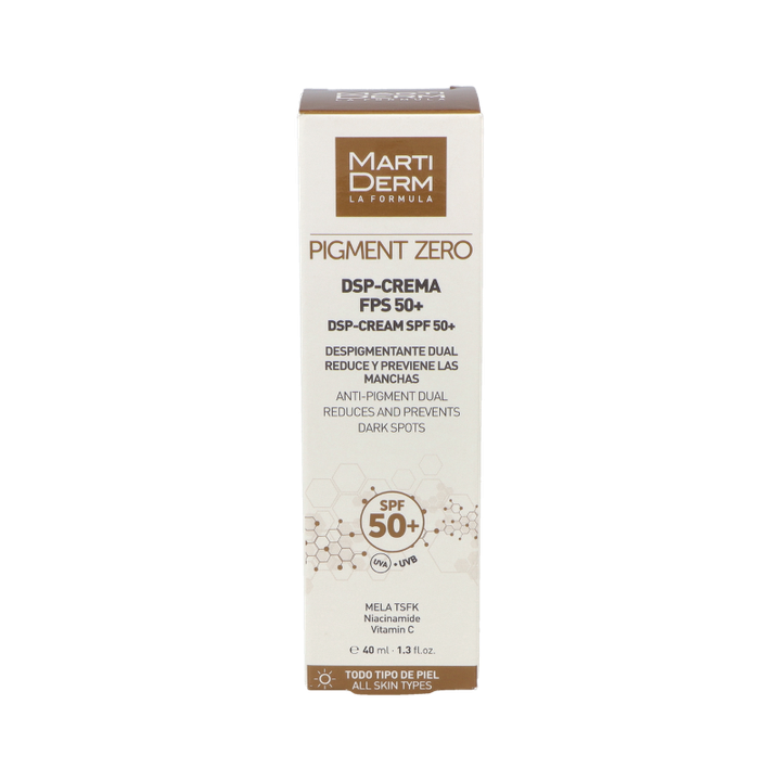 PROPIEDADES\r\n\r\nLa clave de la nueva fórmula es el complejo de activos despigmentantes MELA TSFK, que consiste en la combinación de 4 ácidos: ácido tranexámico, ácido salicílico, ácido ferúlico y ácido kójico. Además contiene niacinamida (inhibidor de la transferencia de los melanosomas a queratinocitos), vitamina C (antioxidante) y filtro solar de alta protección. Debe ser aplicada 2 veces al día (mañana y tarde) sobre zonas que presentan hiperpigmentaciones como cara, cuello, escote manos o antebrazos. Deja la piel hidratada, tiene un acabado satinado y proporciona una sensación aterciopelada.\r\n\r\nACTIVOS PRINCIPALES\r\n