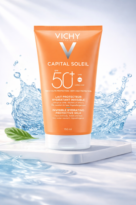 Protege la piel de toda la familia con la Vichy Capital Soleil Leche Hidratante Invisible. Este protector solar de amplio espectro ofrece una resistencia excepcional y una hidratación profunda sin dejar rastro blanco, siendo el aliado perfecto para las pieles más sensibles bajo el sol.