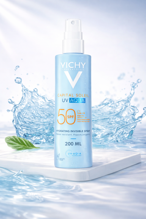 El UV-Aqua Spray de Vichy redefine la protección solar corporal. Gracias a su innovadora tecnología acuosa, ofrece una protección muy alta contra los rayos UVA y UVB en una textura tan ligera como el agua. Es el aliado perfecto para quienes buscan una protección eficaz sin la sensación pegajosa o las manchas blancas de las cremas tradicionales.