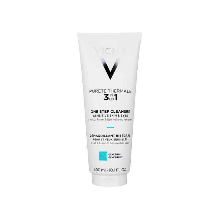 Pureté Thermale Limpiador Integral 3 en 1 para piel sensible limpia las impurezas y las partículas de contaminación, elimina el maquillaje del rostro y los ojos, y deja la piel tonificada y cómoda sin secarla.