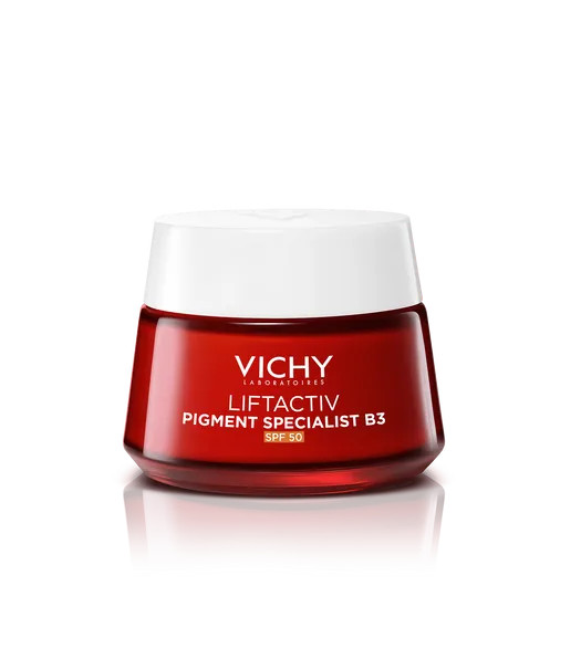 Liftactiv Pigment Specialist B3 Crema de Día SPF50 combate las manchas y arrugas con Niacinamida B3 y Melasyl.