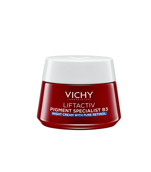Laboratorios Vichy combina Niacinamida B3 y retinol puro en una crema. Difumina hasta el 45% de las manchas. Rejuvenece la piel con 2 millones de células nuevas noche tras noche.